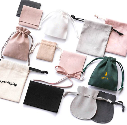 但隨著時代的發(fā)展和思維的創(chuàng)新,珠寶首飾包裝袋也融入了很多設(shè)計上的創(chuàng)新。鉆扣珍珠裝飾束口袋,亮金扣飾信封袋,精致拉鏈小包,雙開合系帶小包等都是目前APEX常做的且最為客戶青睞的珠寶首飾包裝。